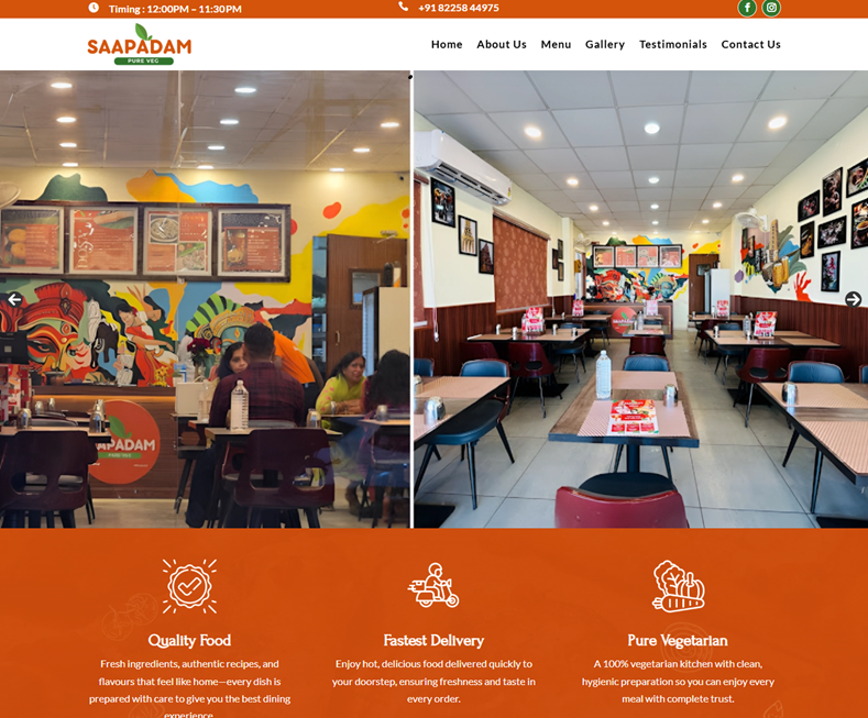 Saapadam Gwalior is a trusted South Indian restaurant in Gwalior that serves the authentic taste of South Indian food. Known for its hygienic cooking, prompt service, and a family-friendly atmosphere at affordable prices, Saapadam serves delicious South Indian food items like Idli, Masala Dosa, Uttapam, Vada, Sambar, and more. When looking for South Indian food near me, food lovers choose the best South Indian restaurants in Gwalior for quality and freshness.